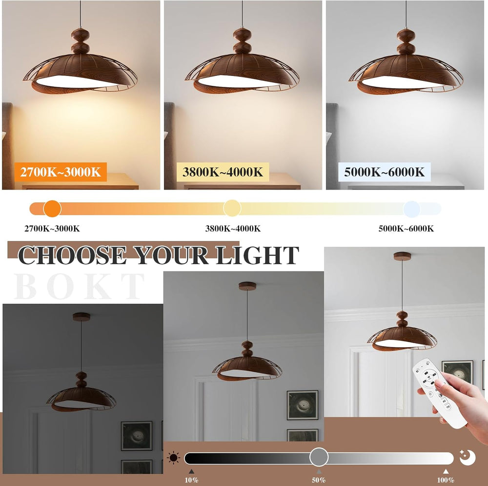 - ADJUSTABLE COLOR TEMPERATURE:The woodgrain hanging lamp is equipped with a user friendly smart remote control. You can easily change the color temperature according to your desired preferences or atmosphere, such as 3000k/4000k/6000k. Just click on the remote to make the lighting adapt to your preferences and create a unique atmosphere.